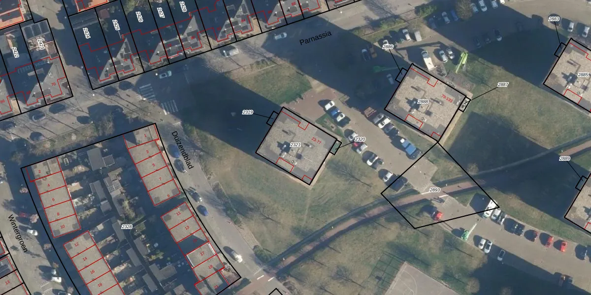 Parnassia 57 is gelegen op kadastraal perceel KWK01D2321. Deze kadastrale aanduiding is uniek en wordt gebruikt door het Kadaster om eigendomsrechten en andere zakelijke rechten vast te leggen. Het perceel maakt onderdeel uit van de kadastrale gemeente Katwijk.