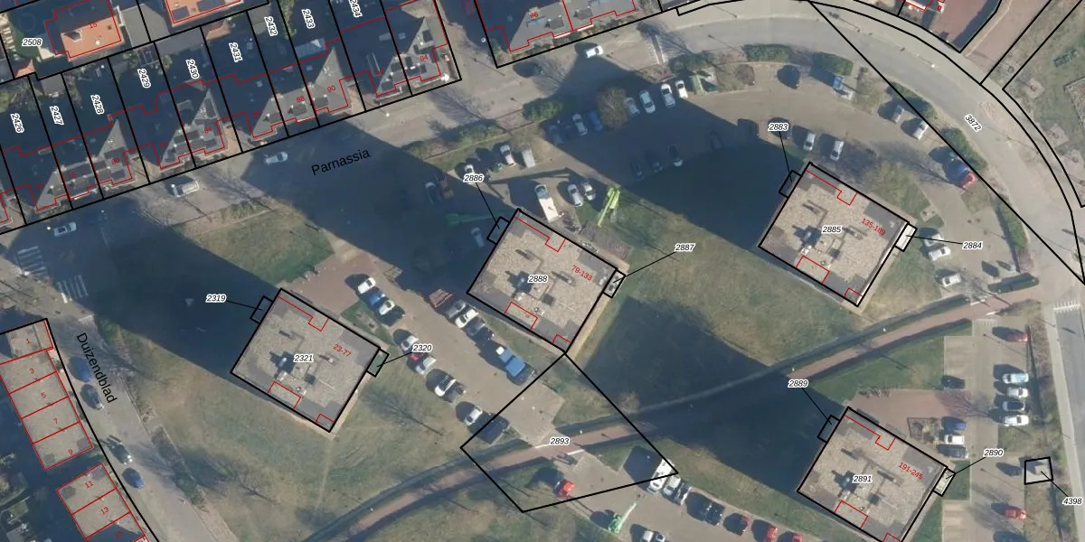 Het perceel waarop Parnassia 81 staat heeft een oppervlakte van 384 m². Dit is een groot perceel. De perceeloppervlakte wordt geregistreerd door het Kadaster. Gedetailleerde informatie over de maten van dit perceel kunt u vinden in het rapport Kadastrale kaart met maatvoering van Parnassia 81.