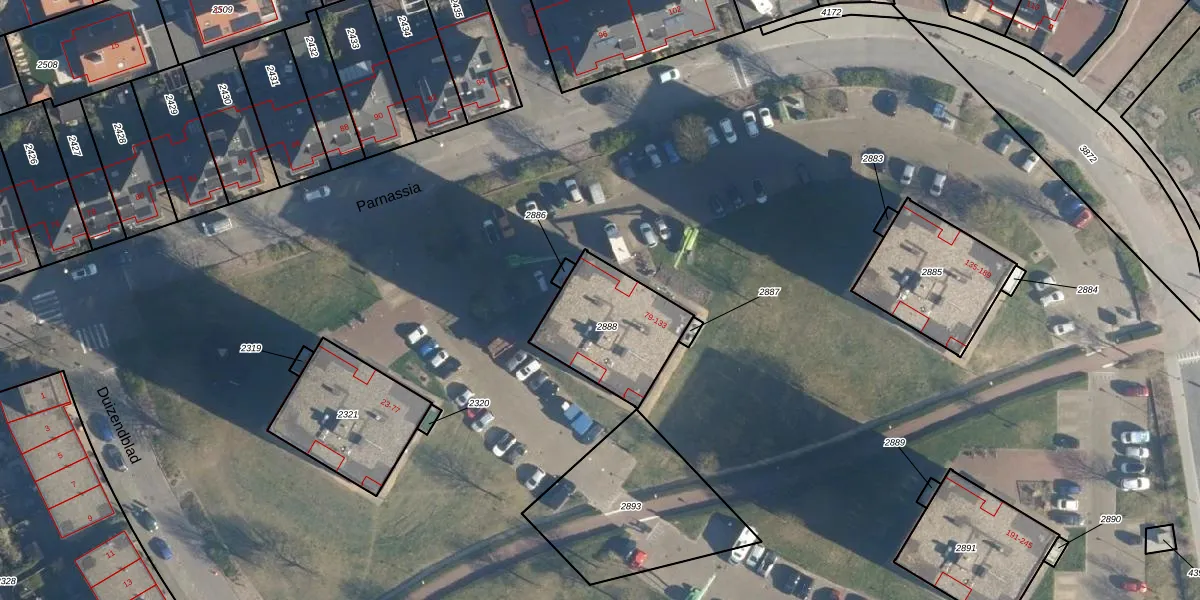 Het perceel waarop Parnassia 87 staat heeft een oppervlakte van 384 m². Dit is een groot perceel. De perceeloppervlakte wordt geregistreerd door het Kadaster. Gedetailleerde informatie over de maten van dit perceel kunt u vinden in het rapport Kadastrale kaart met maatvoering van Parnassia 87.
