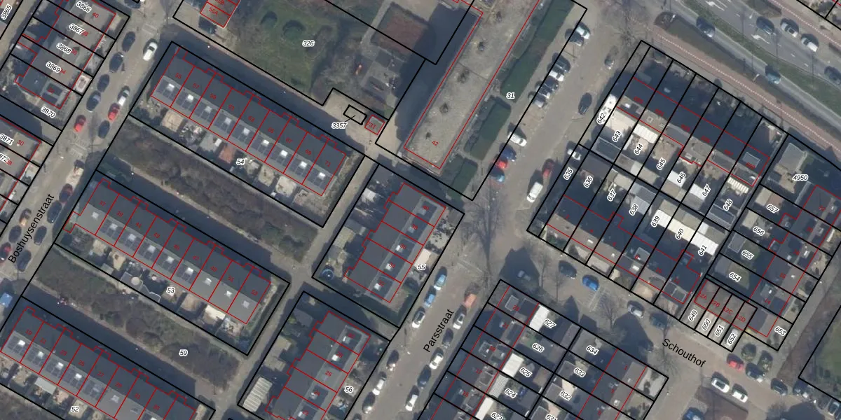 Het perceel waarop Parsstraat 40 staat heeft een oppervlakte van 744 m². Dit is een groot perceel. De perceeloppervlakte wordt geregistreerd door het Kadaster. Gedetailleerde informatie over de maten van dit perceel kunt u vinden in het rapport Kadastrale kaart met maatvoering van Parsstraat 40.