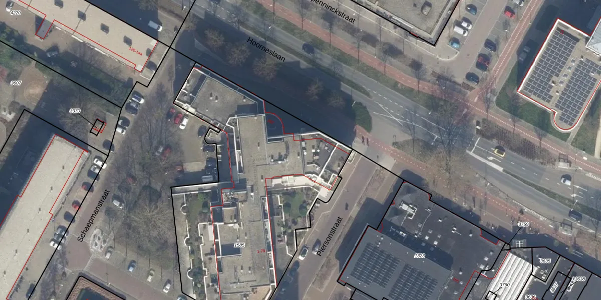 Het perceel waarop Piersonstraat 13 staat heeft een oppervlakte van 2960 m². Dit is een zeer groot perceel. De perceeloppervlakte wordt geregistreerd door het Kadaster. Gedetailleerde informatie over de maten van dit perceel kunt u vinden in het rapport Kadastrale kaart met maatvoering van Piersonstraat 13.