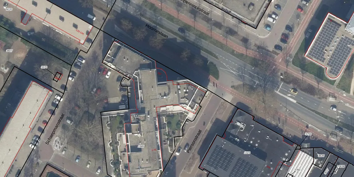 Het perceel waarop Piersonstraat 23 staat heeft een oppervlakte van 2960 m². Dit is een zeer groot perceel. De perceeloppervlakte wordt geregistreerd door het Kadaster. Gedetailleerde informatie over de maten van dit perceel kunt u vinden in het rapport Kadastrale kaart met maatvoering van Piersonstraat 23.