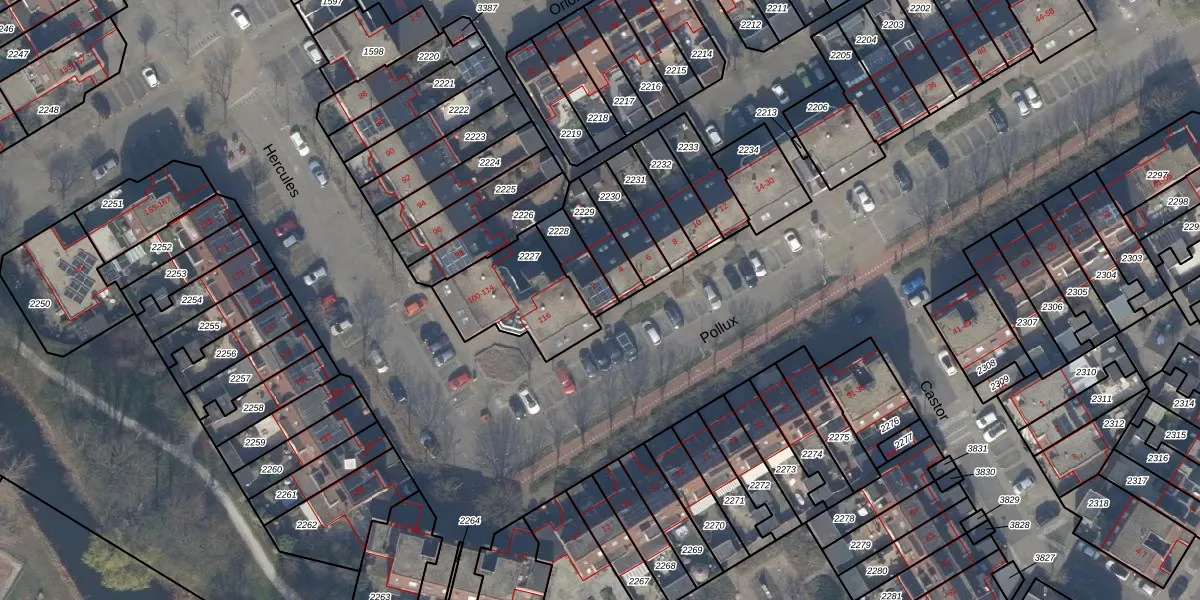 Het perceel waarop Pollux 2 staat heeft een oppervlakte van 94 m². Dit is een klein perceel. De perceeloppervlakte wordt geregistreerd door het Kadaster. Gedetailleerde informatie over de maten van dit perceel kunt u vinden in het rapport Kadastrale kaart met maatvoering van Pollux 2.