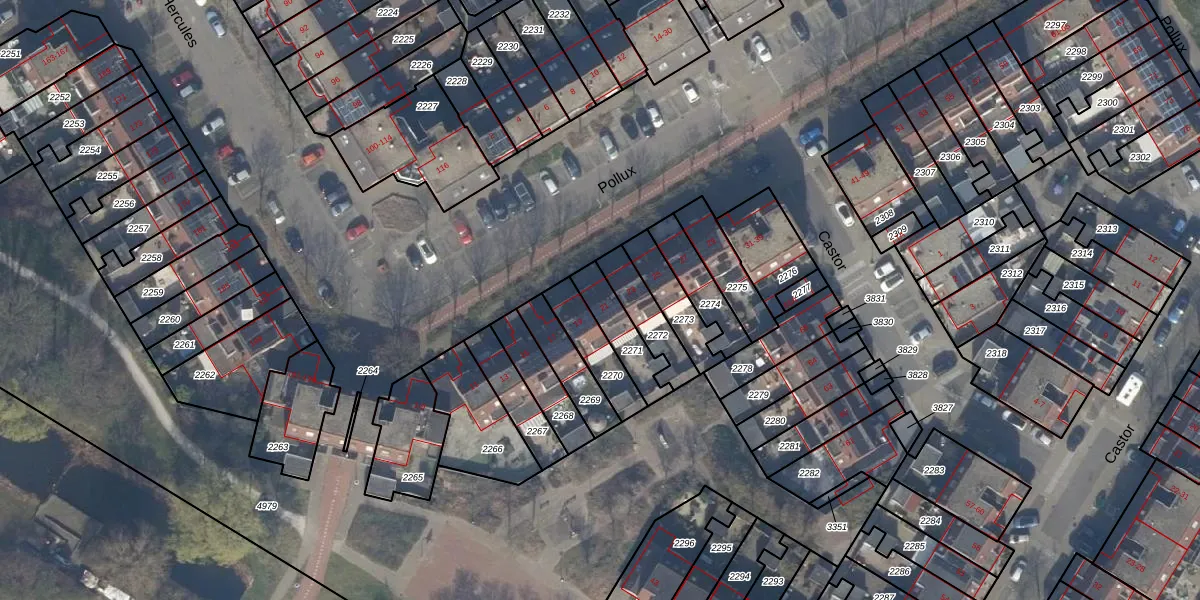 Gebruik de zoekbalk of klik op een perceel voor informatie over de adressen binnen dit perceel.