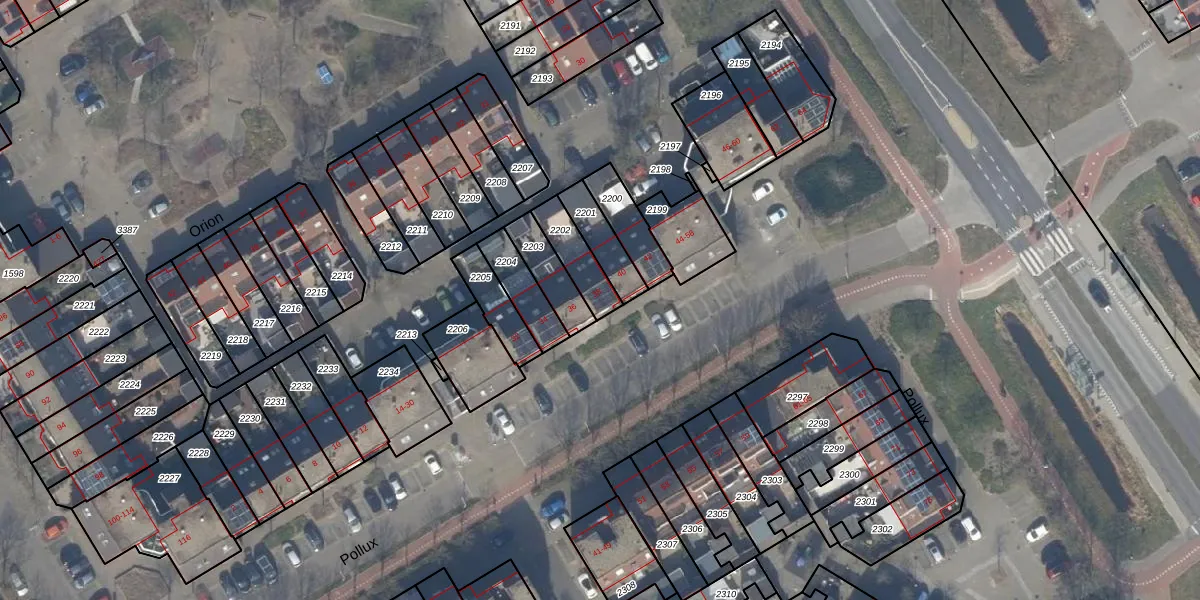 Gebruik de zoekbalk of klik op een perceel voor informatie over de adressen binnen dit perceel.