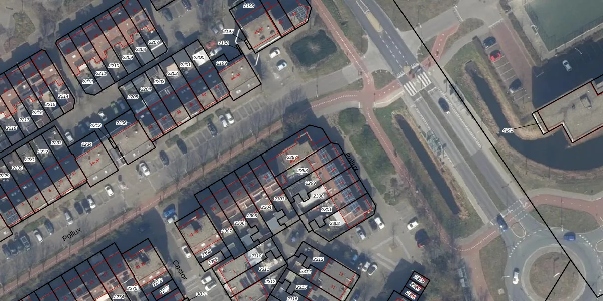 Het perceel waarop Pollux 65 staat heeft een oppervlakte van 188 m². Dit is een middelgroot perceel. De perceeloppervlakte wordt geregistreerd door het Kadaster. Gedetailleerde informatie over de maten van dit perceel kunt u vinden in het rapport Kadastrale kaart met maatvoering van Pollux 65.
