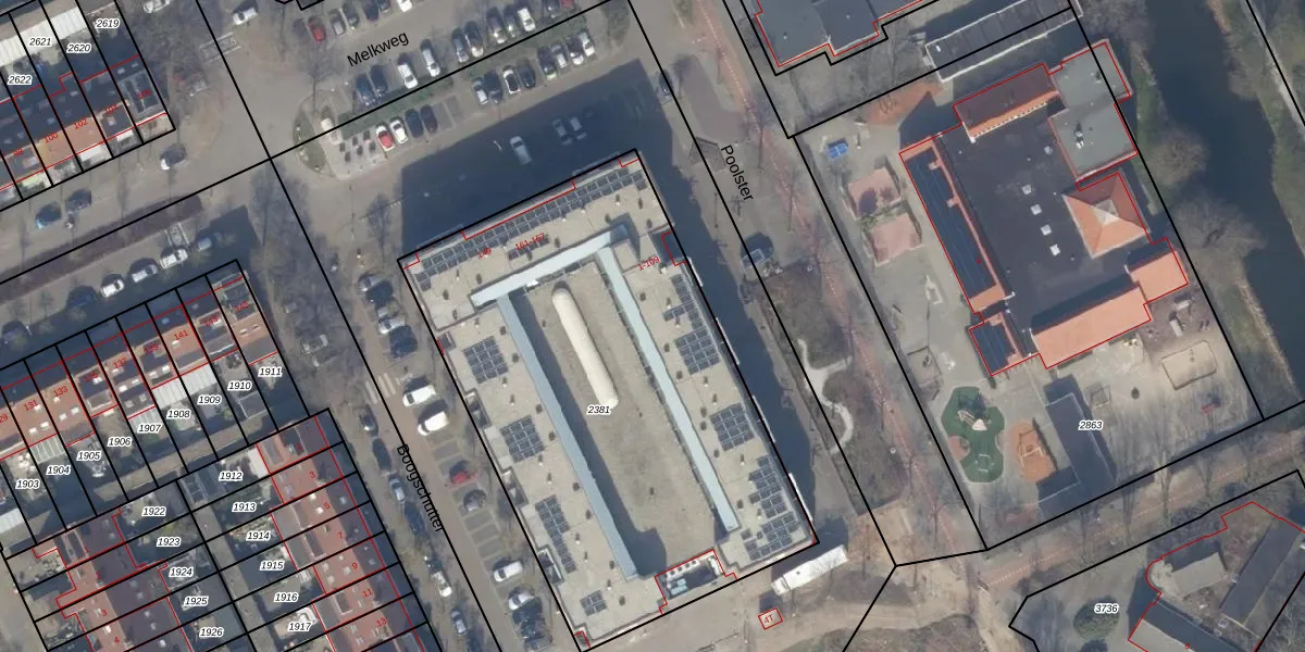 Het perceel waarop Poolster 107 staat heeft een oppervlakte van 2675 m². Dit is een zeer groot perceel. De perceeloppervlakte wordt geregistreerd door het Kadaster. Gedetailleerde informatie over de maten van dit perceel kunt u vinden in het rapport Kadastrale kaart met maatvoering van Poolster 107.