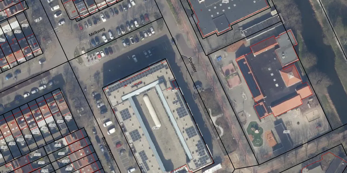 Het perceel waarop Poolster 11 staat heeft een oppervlakte van 2675 m². Dit is een zeer groot perceel. De perceeloppervlakte wordt geregistreerd door het Kadaster. Gedetailleerde informatie over de maten van dit perceel kunt u vinden in het rapport Kadastrale kaart met maatvoering van Poolster 11.
