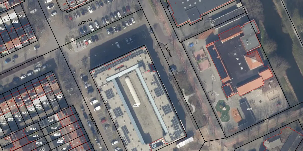 Het perceel waarop Poolster 15 staat heeft een oppervlakte van 2675 m². Dit is een zeer groot perceel. De perceeloppervlakte wordt geregistreerd door het Kadaster. Gedetailleerde informatie over de maten van dit perceel kunt u vinden in het rapport Kadastrale kaart met maatvoering van Poolster 15.
