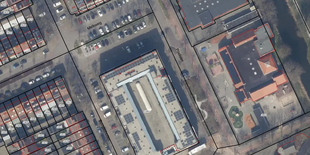 Het perceel waarop Poolster 21 staat heeft een oppervlakte van 2675 m². Dit is een zeer groot perceel. De perceeloppervlakte wordt geregistreerd door het Kadaster. Gedetailleerde informatie over de maten van dit perceel kunt u vinden in het rapport Kadastrale kaart met maatvoering van Poolster 21.