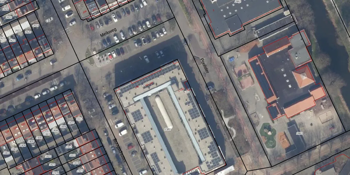 Het perceel waarop Poolster 41 staat heeft een oppervlakte van 2675 m². Dit is een zeer groot perceel. De perceeloppervlakte wordt geregistreerd door het Kadaster. Gedetailleerde informatie over de maten van dit perceel kunt u vinden in het rapport Kadastrale kaart met maatvoering van Poolster 41.
