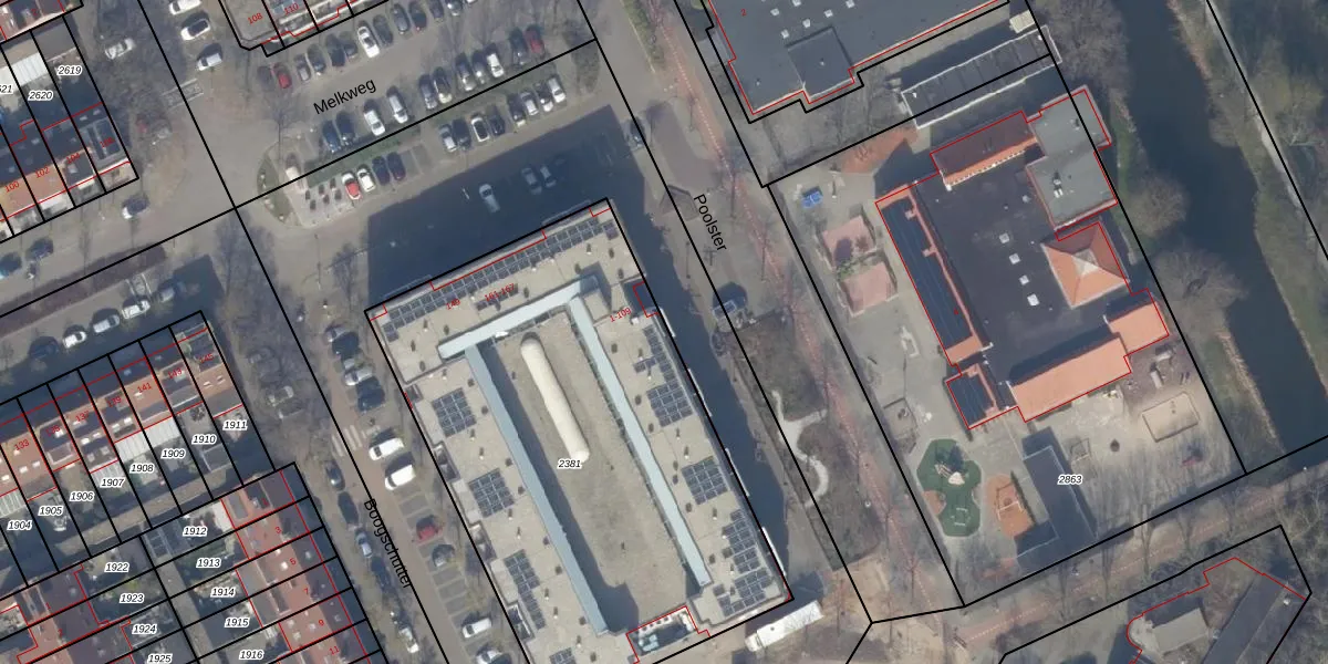 Het perceel waarop Poolster 49 staat heeft een oppervlakte van 2675 m². Dit is een zeer groot perceel. De perceeloppervlakte wordt geregistreerd door het Kadaster. Gedetailleerde informatie over de maten van dit perceel kunt u vinden in het rapport Kadastrale kaart met maatvoering van Poolster 49.