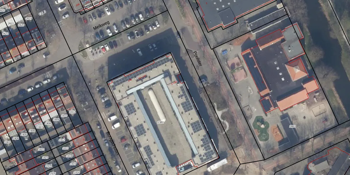 Het perceel waarop Poolster 5 staat heeft een oppervlakte van 2675 m². Dit is een zeer groot perceel. De perceeloppervlakte wordt geregistreerd door het Kadaster. Gedetailleerde informatie over de maten van dit perceel kunt u vinden in het rapport Kadastrale kaart met maatvoering van Poolster 5.