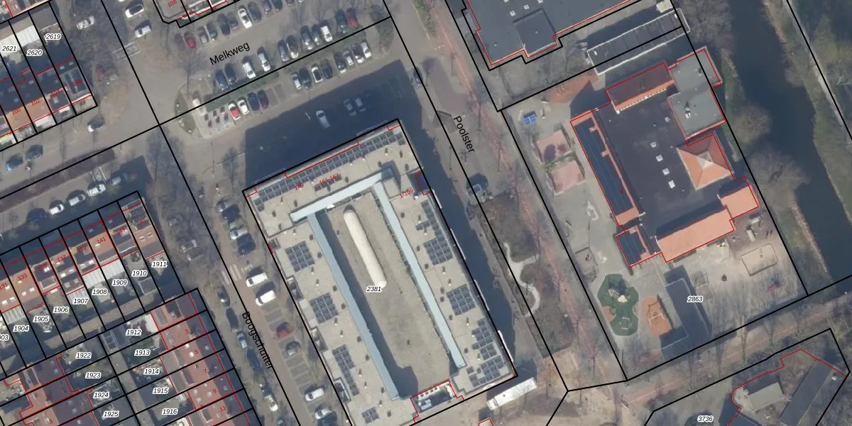 Het perceel waarop Poolster 51 staat heeft een oppervlakte van 2675 m². Dit is een zeer groot perceel. De perceeloppervlakte wordt geregistreerd door het Kadaster. Gedetailleerde informatie over de maten van dit perceel kunt u vinden in het rapport Kadastrale kaart met maatvoering van Poolster 51.