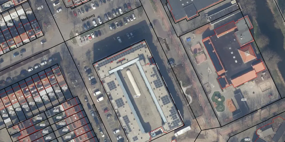 Het perceel waarop Poolster 59 staat heeft een oppervlakte van 2675 m². Dit is een zeer groot perceel. De perceeloppervlakte wordt geregistreerd door het Kadaster. Gedetailleerde informatie over de maten van dit perceel kunt u vinden in het rapport Kadastrale kaart met maatvoering van Poolster 59.