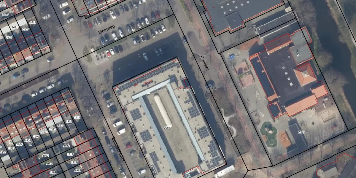 Het perceel waarop Poolster 7 staat heeft een oppervlakte van 2675 m². Dit is een zeer groot perceel. De perceeloppervlakte wordt geregistreerd door het Kadaster. Gedetailleerde informatie over de maten van dit perceel kunt u vinden in het rapport Kadastrale kaart met maatvoering van Poolster 7.