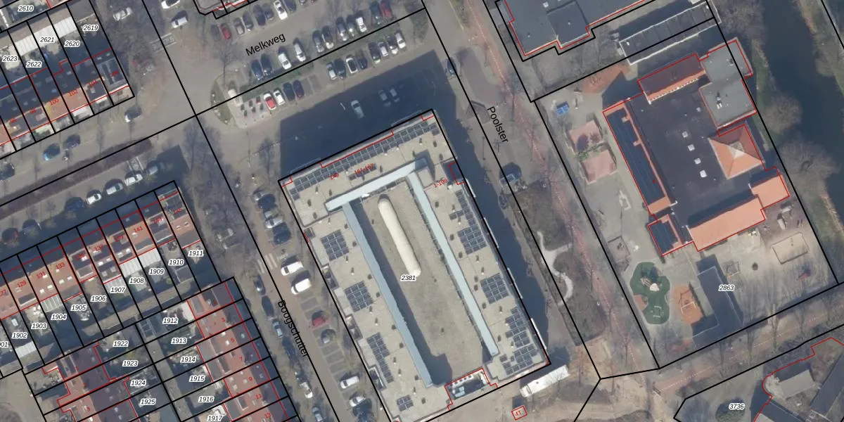 Het perceel waarop Poolster 83 staat heeft een oppervlakte van 2675 m². Dit is een zeer groot perceel. De perceeloppervlakte wordt geregistreerd door het Kadaster. Gedetailleerde informatie over de maten van dit perceel kunt u vinden in het rapport Kadastrale kaart met maatvoering van Poolster 83.