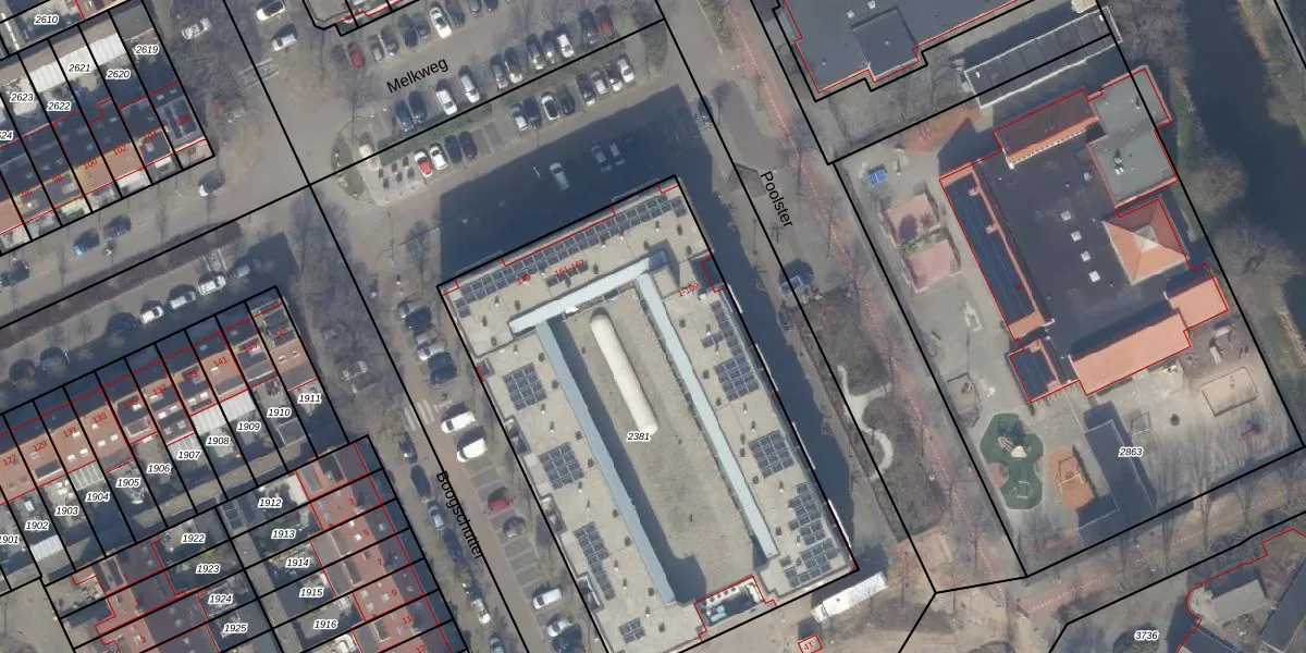 Het perceel waarop Poolster 85 staat heeft een oppervlakte van 2675 m². Dit is een zeer groot perceel. De perceeloppervlakte wordt geregistreerd door het Kadaster. Gedetailleerde informatie over de maten van dit perceel kunt u vinden in het rapport Kadastrale kaart met maatvoering van Poolster 85.