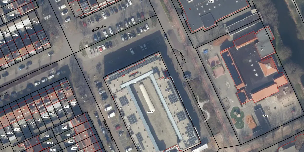 Het perceel waarop Poolster 91 staat heeft een oppervlakte van 2675 m². Dit is een zeer groot perceel. De perceeloppervlakte wordt geregistreerd door het Kadaster. Gedetailleerde informatie over de maten van dit perceel kunt u vinden in het rapport Kadastrale kaart met maatvoering van Poolster 91.