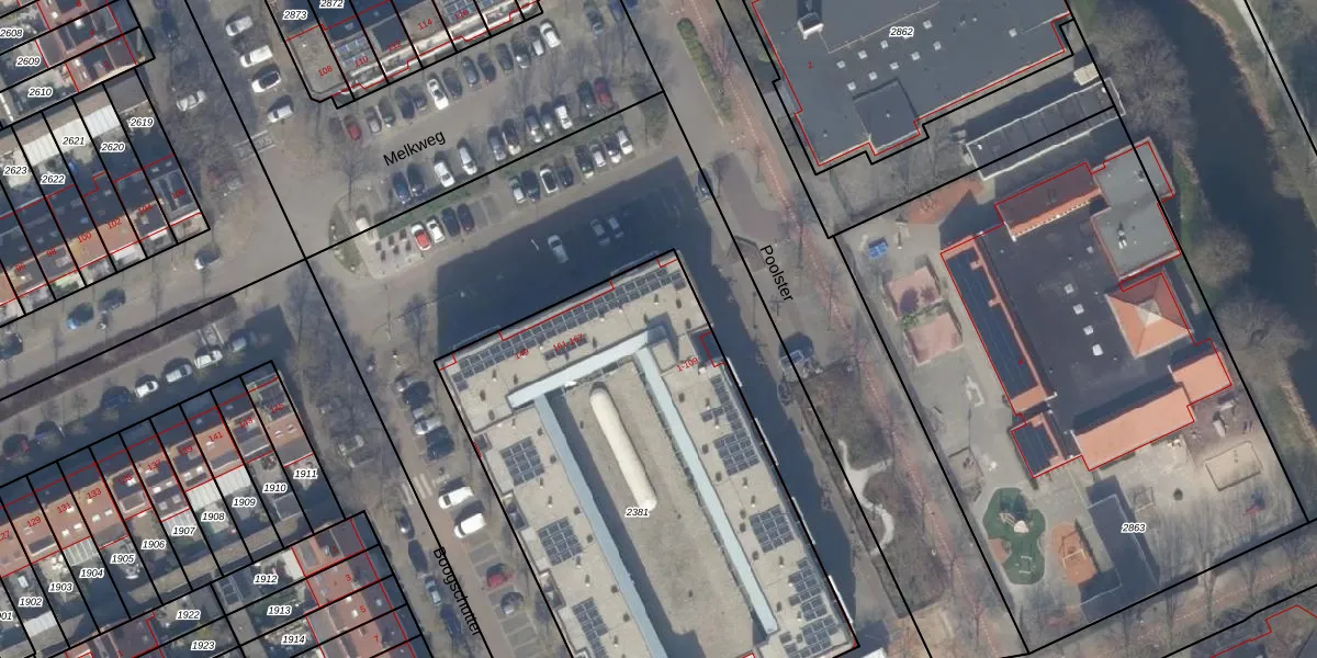 Het perceel waarop Poolster 95 staat heeft een oppervlakte van 2675 m². Dit is een zeer groot perceel. De perceeloppervlakte wordt geregistreerd door het Kadaster. Gedetailleerde informatie over de maten van dit perceel kunt u vinden in het rapport Kadastrale kaart met maatvoering van Poolster 95.