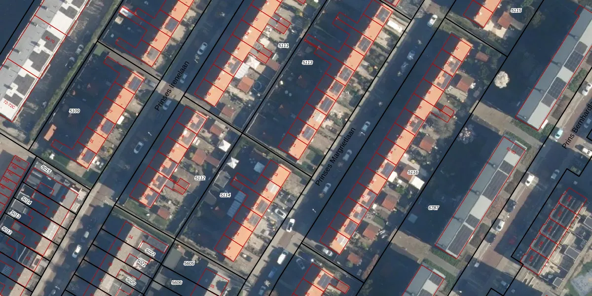 Het perceel waarop Prinses Margrietlaan 21 staat heeft een oppervlakte van 1750 m². Dit is een zeer groot perceel. De perceeloppervlakte wordt geregistreerd door het Kadaster. Gedetailleerde informatie over de maten van dit perceel kunt u vinden in het rapport Kadastrale kaart met maatvoering van Prinses Margrietlaan 21.