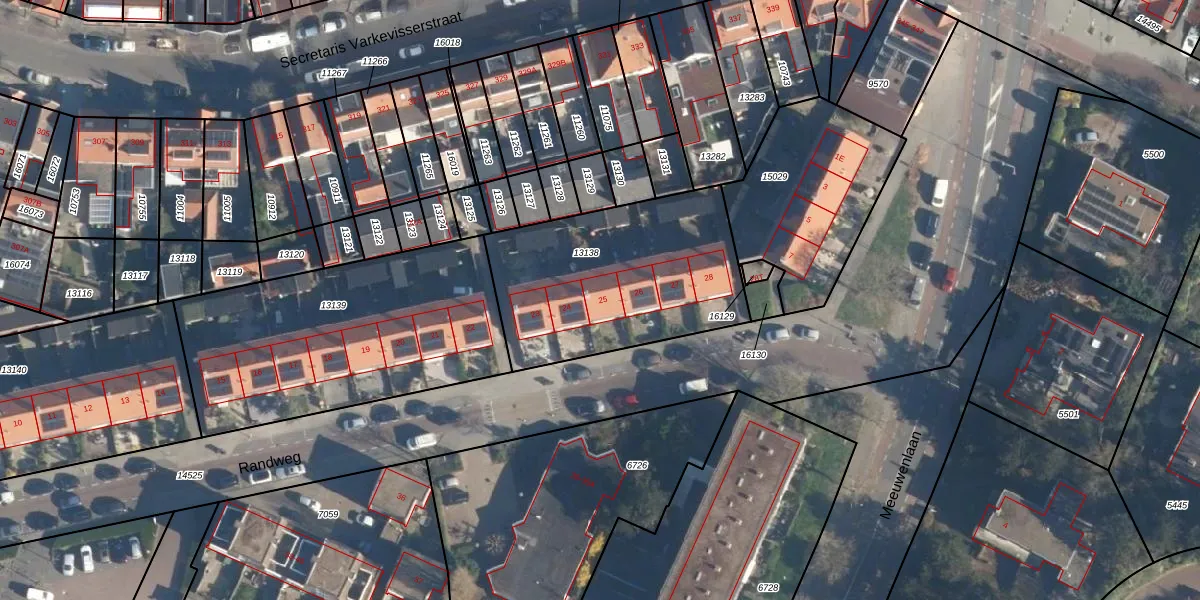 Het perceel waarop Randweg 25 staat heeft een oppervlakte van 950 m². Dit is een groot perceel. De perceeloppervlakte wordt geregistreerd door het Kadaster. Gedetailleerde informatie over de maten van dit perceel kunt u vinden in het rapport Kadastrale kaart met maatvoering van Randweg 25.