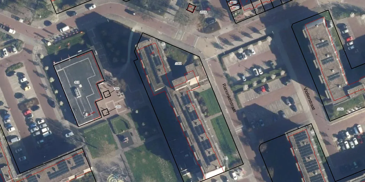 Ranonkelstraat 21 is gelegen op kadastraal perceel KWK01D1351. Deze kadastrale aanduiding is uniek en wordt gebruikt door het Kadaster om eigendomsrechten en andere zakelijke rechten vast te leggen. Het perceel maakt onderdeel uit van de kadastrale gemeente Katwijk.