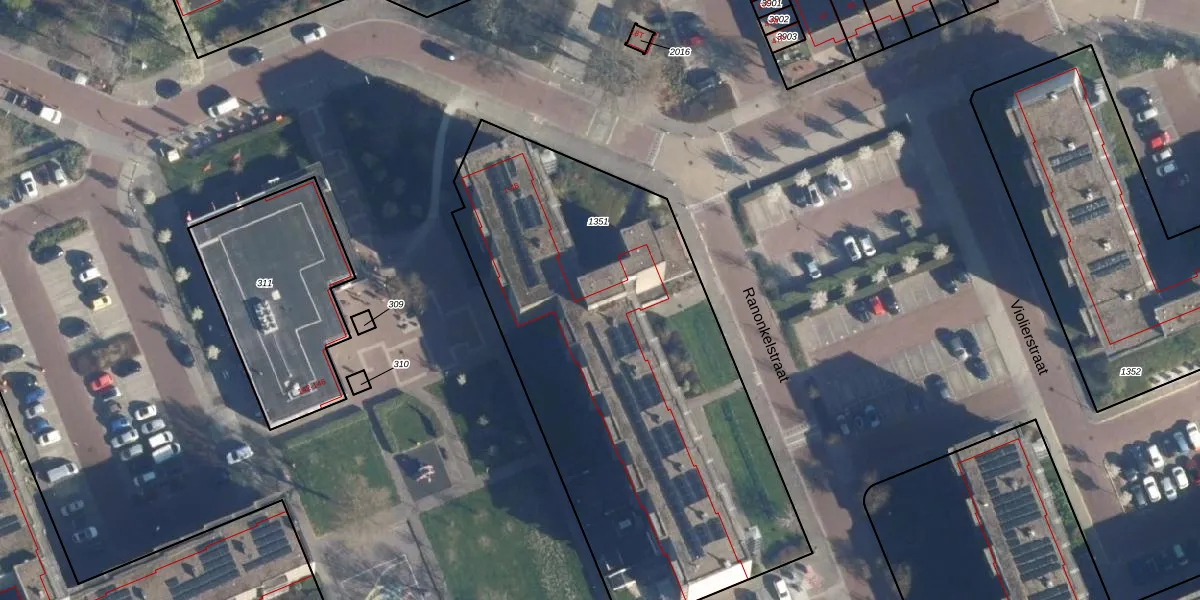 Het perceel waarop Ranonkelstraat 22 staat heeft een oppervlakte van 2644 m². Dit is een zeer groot perceel. De perceeloppervlakte wordt geregistreerd door het Kadaster. Gedetailleerde informatie over de maten van dit perceel kunt u vinden in het rapport Kadastrale kaart met maatvoering van Ranonkelstraat 22.