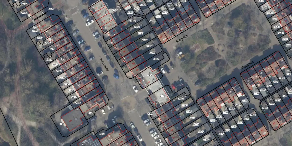 Het perceel waarop Regulus 12 staat heeft een oppervlakte van 214 m². Dit is een middelgroot perceel. De perceeloppervlakte wordt geregistreerd door het Kadaster. Gedetailleerde informatie over de maten van dit perceel kunt u vinden in het rapport Kadastrale kaart met maatvoering van Regulus 12.