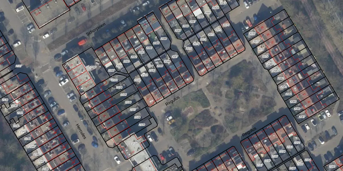 Het perceel waarop Regulus 16 staat heeft een oppervlakte van 118 m². Dit is een middelgroot perceel. De perceeloppervlakte wordt geregistreerd door het Kadaster. Gedetailleerde informatie over de maten van dit perceel kunt u vinden in het rapport Kadastrale kaart met maatvoering van Regulus 16.