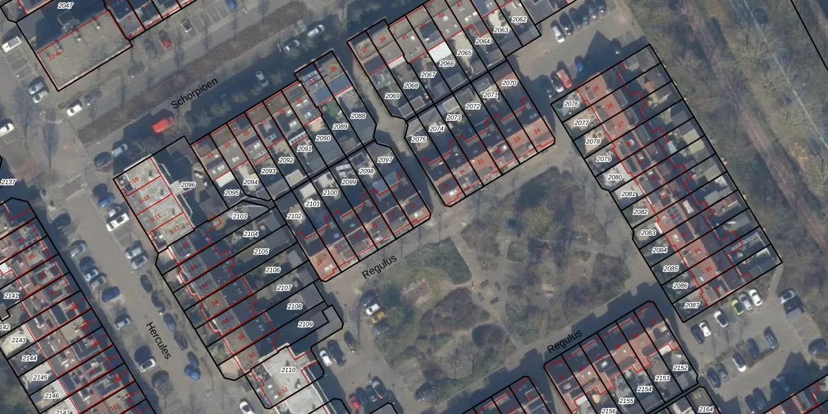 Gebruik de zoekbalk of klik op een perceel voor informatie over de adressen binnen dit perceel.