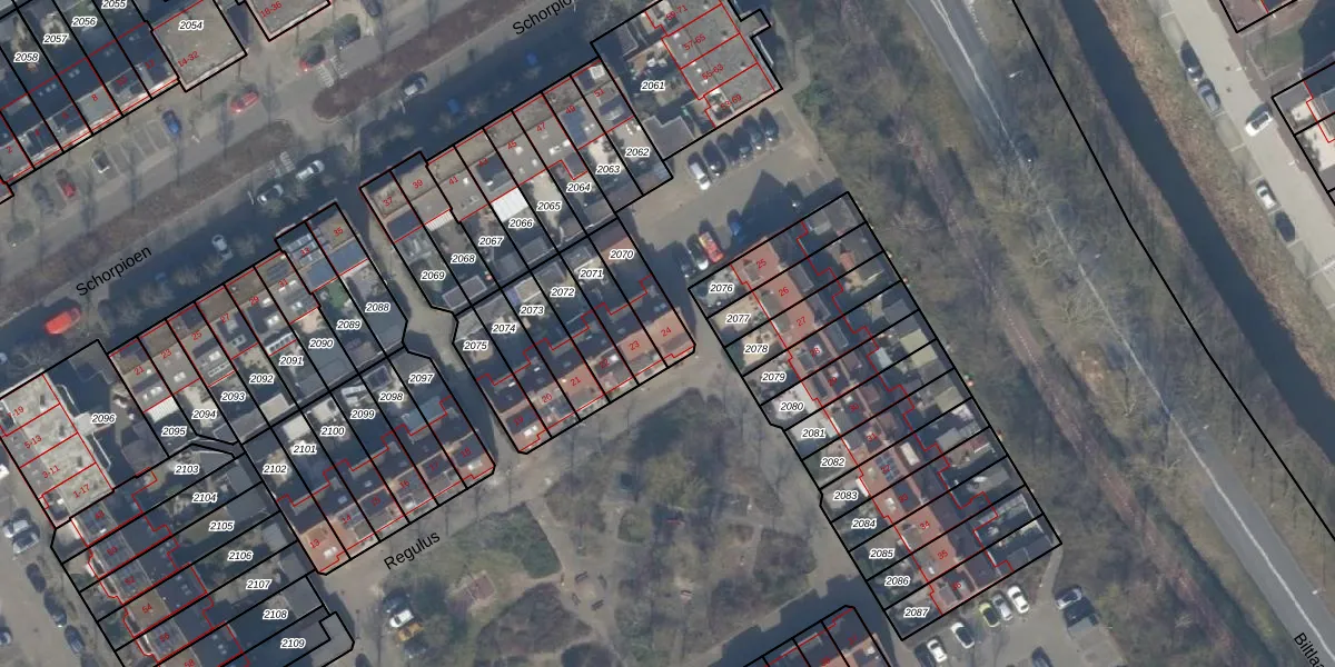 Gebruik de zoekbalk of klik op een perceel voor informatie over de adressen binnen dit perceel.