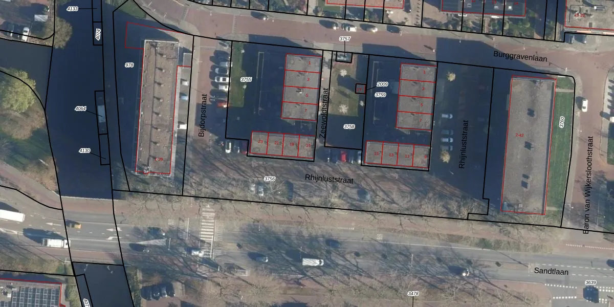 Het perceel waarop Rhijnluststraat 17 staat heeft een oppervlakte van 1045 m². Dit is een zeer groot perceel. De perceeloppervlakte wordt geregistreerd door het Kadaster. Gedetailleerde informatie over de maten van dit perceel kunt u vinden in het rapport Kadastrale kaart met maatvoering van Rhijnluststraat 17.
