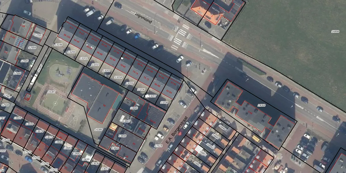 Het perceel waarop Rijnmond 59 staat heeft een oppervlakte van 156 m². Dit is een middelgroot perceel. De perceeloppervlakte wordt geregistreerd door het Kadaster. Gedetailleerde informatie over de maten van dit perceel kunt u vinden in het rapport Kadastrale kaart met maatvoering van Rijnmond 59.
