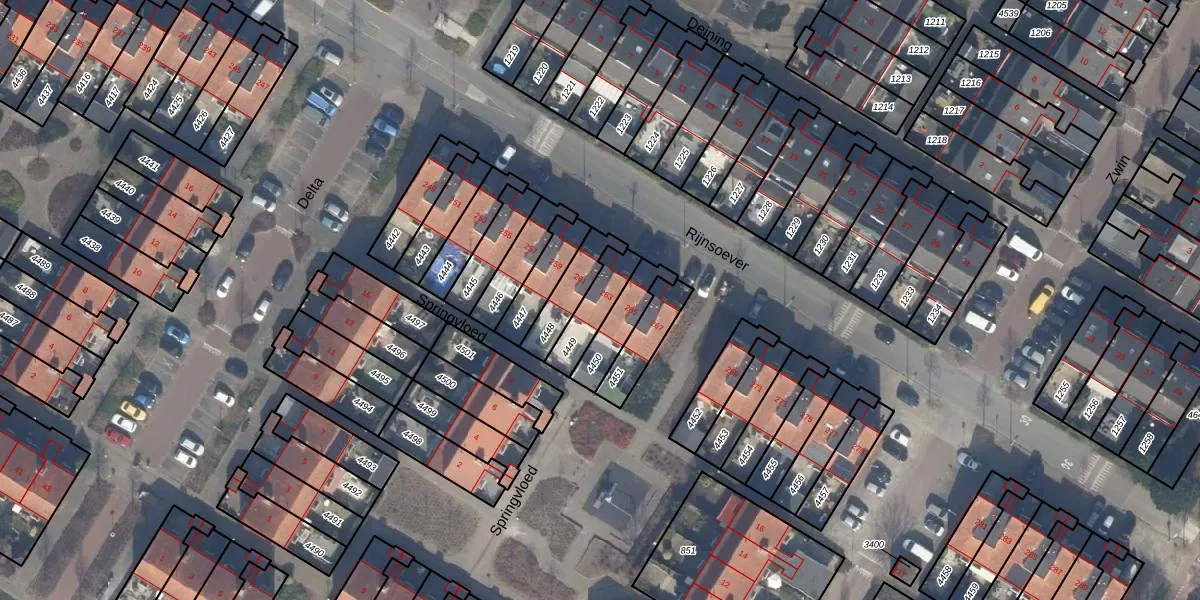 Gebruik de zoekbalk of klik op een perceel voor informatie over de adressen binnen dit perceel.