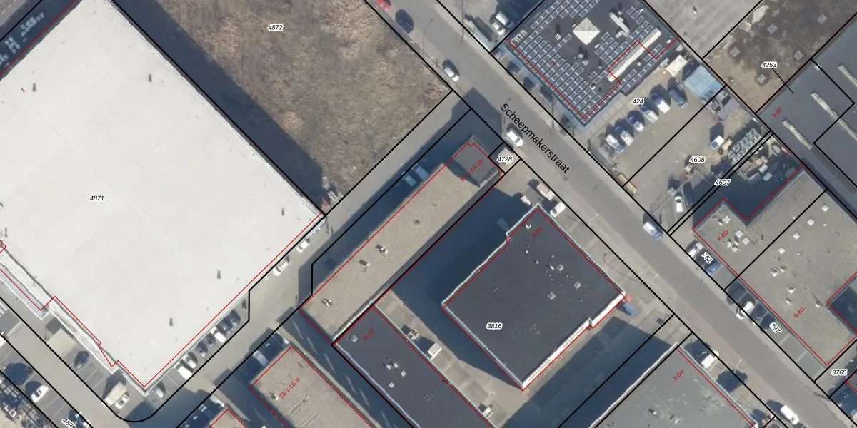 Het perceel waarop Scheepmakerstraat 1-A-4 staat heeft een oppervlakte van 3906 m². Dit is een zeer groot perceel. De perceeloppervlakte wordt geregistreerd door het Kadaster. Gedetailleerde informatie over de maten van dit perceel kunt u vinden in het rapport Kadastrale kaart met maatvoering van Scheepmakerstraat 1-A-4.