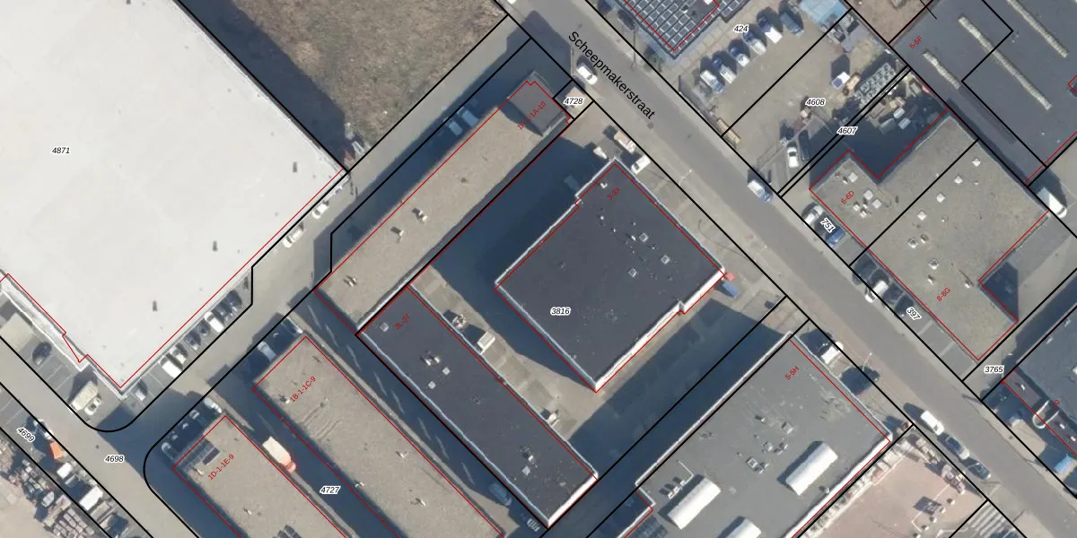 Het perceel waarop Scheepmakerstraat 3-V staat heeft een oppervlakte van 3162 m². Dit is een zeer groot perceel. De perceeloppervlakte wordt geregistreerd door het Kadaster. Gedetailleerde informatie over de maten van dit perceel kunt u vinden in het rapport Kadastrale kaart met maatvoering van Scheepmakerstraat 3-V.