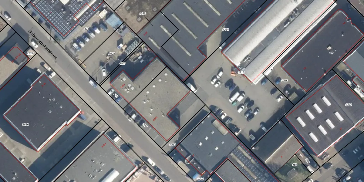 Het perceel waarop Scheepmakerstraat 8-G staat heeft een oppervlakte van 1020 m². Dit is een zeer groot perceel. De perceeloppervlakte wordt geregistreerd door het Kadaster. Gedetailleerde informatie over de maten van dit perceel kunt u vinden in het rapport Kadastrale kaart met maatvoering van Scheepmakerstraat 8-G.
