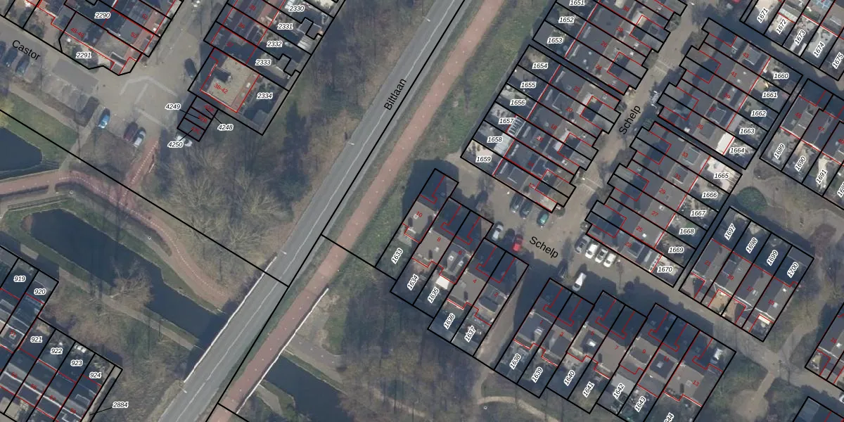 Gebruik de zoekbalk of klik op een perceel voor informatie over de adressen binnen dit perceel.