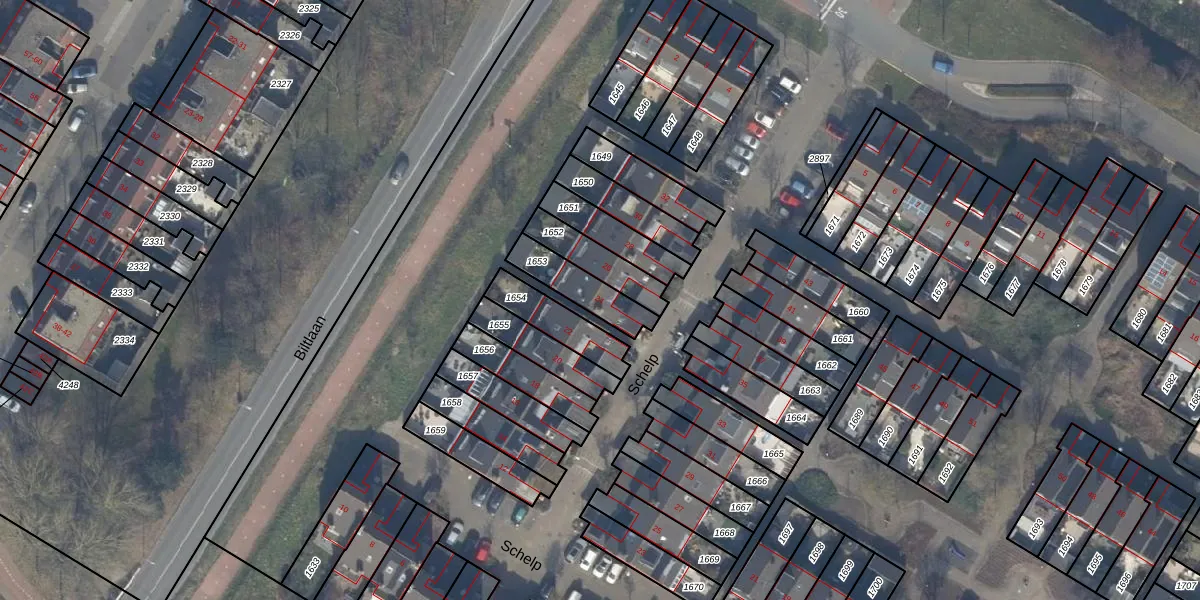 Gebruik de zoekbalk of klik op een perceel voor informatie over de adressen binnen dit perceel.
