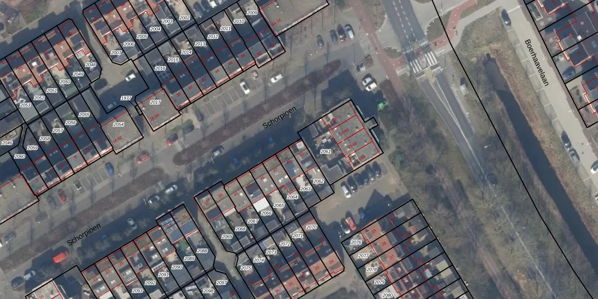 Gebruik de zoekbalk of klik op een perceel voor informatie over de adressen binnen dit perceel.