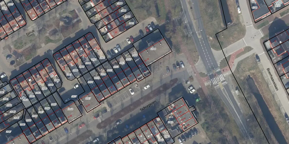 Gebruik de zoekbalk of klik op een perceel voor informatie over de adressen binnen dit perceel.