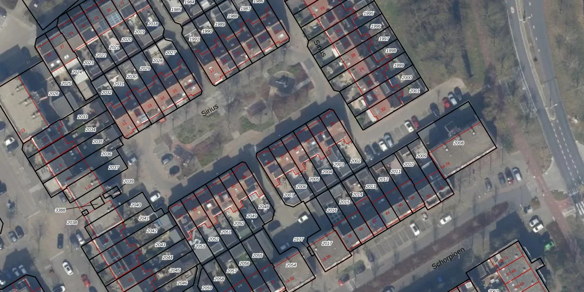 Gebruik de zoekbalk of klik op een perceel voor informatie over de adressen binnen dit perceel.
