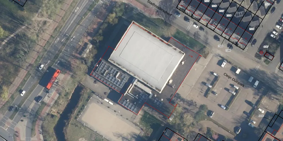 Het perceel waarop Stadhoudersdreef 1-B staat heeft een oppervlakte van 10,8 ha. Dit is een zeer groot perceel. De perceeloppervlakte wordt geregistreerd door het Kadaster. Gedetailleerde informatie over de maten van dit perceel kunt u vinden in het rapport Kadastrale kaart met maatvoering van Stadhoudersdreef 1-B.
