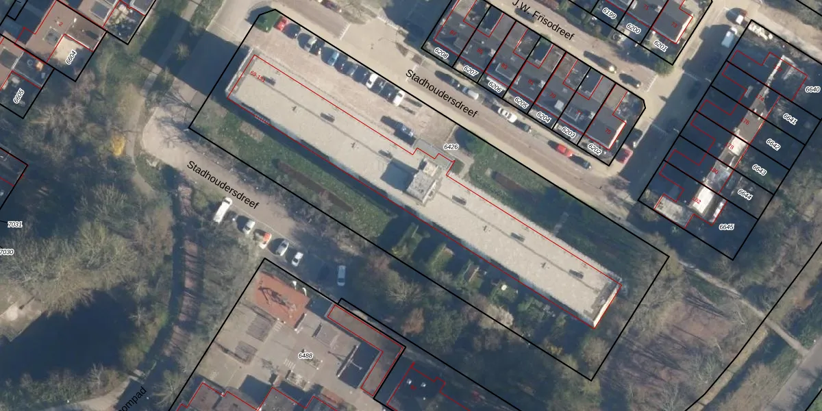 Stadhoudersdreef 101 is gelegen op kadastraal perceel KWK01B6426. Deze kadastrale aanduiding is uniek en wordt gebruikt door het Kadaster om eigendomsrechten en andere zakelijke rechten vast te leggen. Het perceel maakt onderdeel uit van de kadastrale gemeente Katwijk.