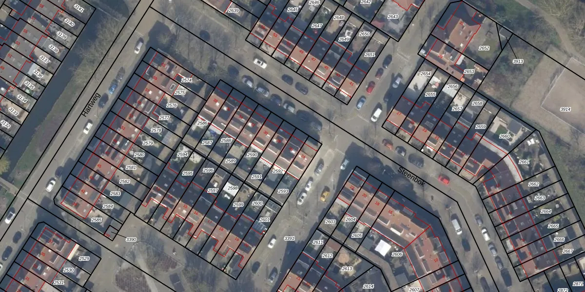 Gebruik de zoekbalk of klik op een perceel voor informatie over de adressen binnen dit perceel.