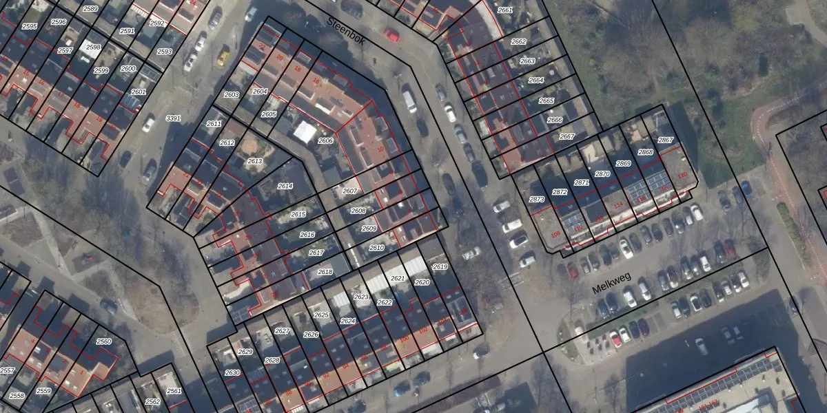 Gebruik de zoekbalk of klik op een perceel voor informatie over de adressen binnen dit perceel.