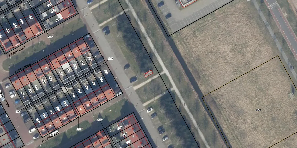 Gebruik de zoekbalk of klik op een perceel voor informatie over de adressen binnen dit perceel.