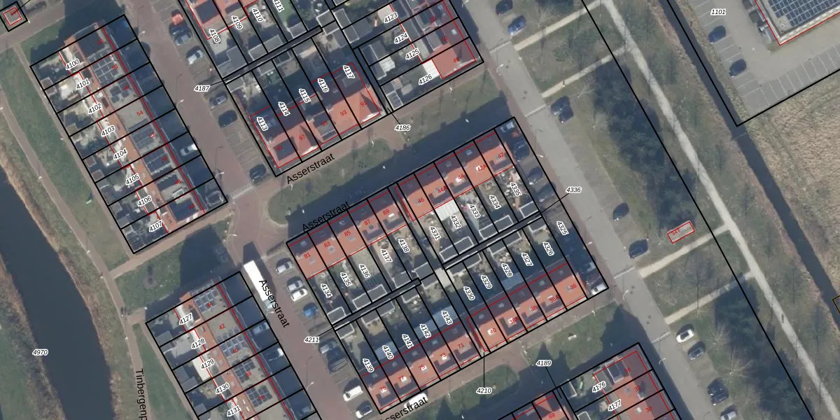 Gebruik de zoekbalk of klik op een perceel voor informatie over de adressen binnen dit perceel.