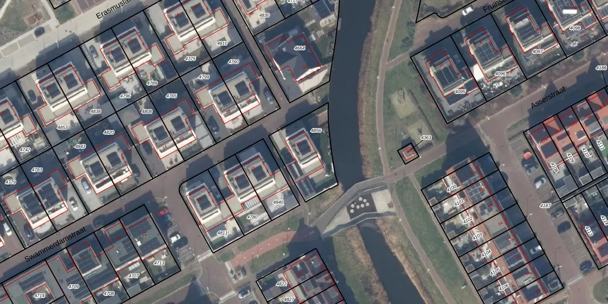Gebruik de zoekbalk of klik op een perceel voor informatie over de adressen binnen dit perceel.